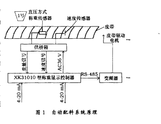 自動配料系統由數臺配料皮帶秤及其稱重顯示控制器、傳感器、供橋板 和供 電系統組成系統原理如圖1所示,
