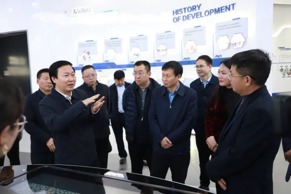 穆嶸坤一行實地參觀了中偉科技館、智能制造車間、以及電池綜合回收循環利用產業化建設工地,并召開座談會聽取匯報,全面了解中偉的生產經營、技術創新、項目建設等情況。