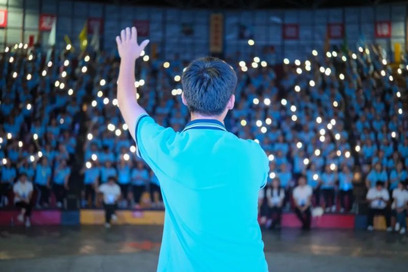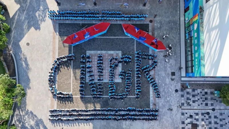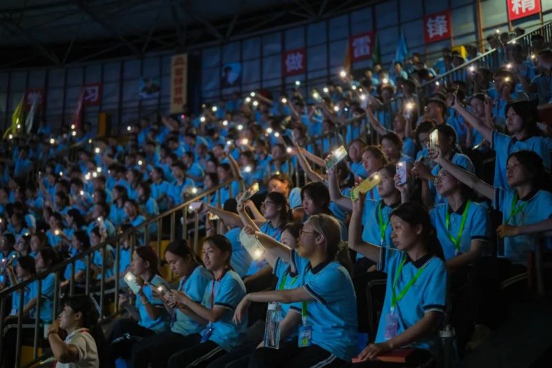 在授旗儀式上,劉一、唐琦軍為12支由Ni、Co、Mn等化學(xué)元素命名的班級(jí)授旗。由此,12支訓(xùn)練有素、青春洋溢的2024屆中偉雛鷹隊(duì)伍正式集結(jié)完畢,“創(chuàng)造中成就偉業(yè)”的誓詞響徹全場(chǎng)。