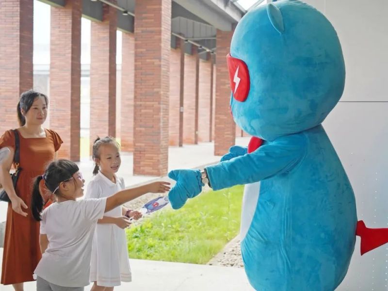 隨著中偉品牌IP“鋰電寶寶”一聲響亮的口令,中偉科技館的大門緩緩打開,新穎的開場方式一下子就吸引了小朋友們的目光,他們懷著強(qiáng)烈的好奇心,邁著整齊的步伐,進(jìn)入科技館,沉浸式體驗(yàn)關(guān)于新能源材料的一切。