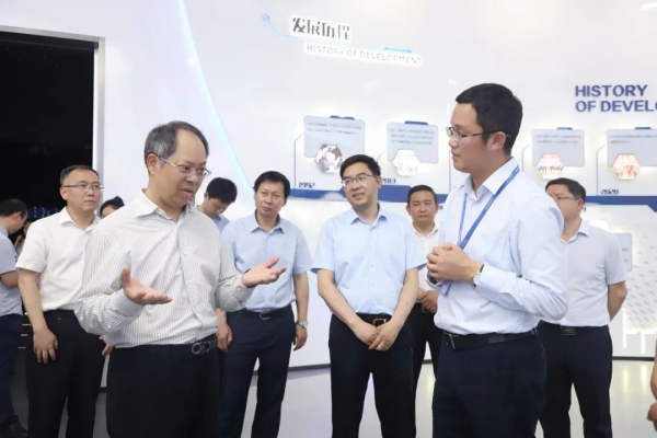 隨后,陶長海一行前往智能制造三元八車間參觀,了解了車間智能化和數(shù)字化作業(yè)現(xiàn)場,并通過大數(shù)據(jù)平臺實時查看了“人、機、料、法、環(huán)”的運轉(zhuǎn)情況、中偉自主研發(fā)的自動化生產(chǎn)設(shè)備情況,鳥瞰了中偉在貴州銅仁總部的原料廠區(qū)、材料廠區(qū)、環(huán)保廠區(qū)、高冰鎳項目的區(qū)域分布情況。