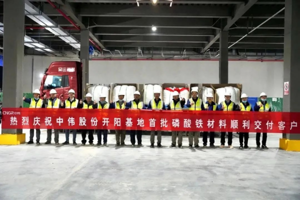 2022年12月5日,中偉首批磷酸鐵產(chǎn)品在開陽產(chǎn)業(yè)基地成功產(chǎn)出,宣告開陽年產(chǎn)20萬噸磷酸鐵項目首條產(chǎn)線順利實現(xiàn)投產(chǎn)。12月15日,第一批磷酸鐵合格品交付客戶,標志著中偉磷酸鐵產(chǎn)品實現(xiàn)規(guī)模化量產(chǎn),公司邁入鎳系、鈷系、磷系三大主銷產(chǎn)品新時代。